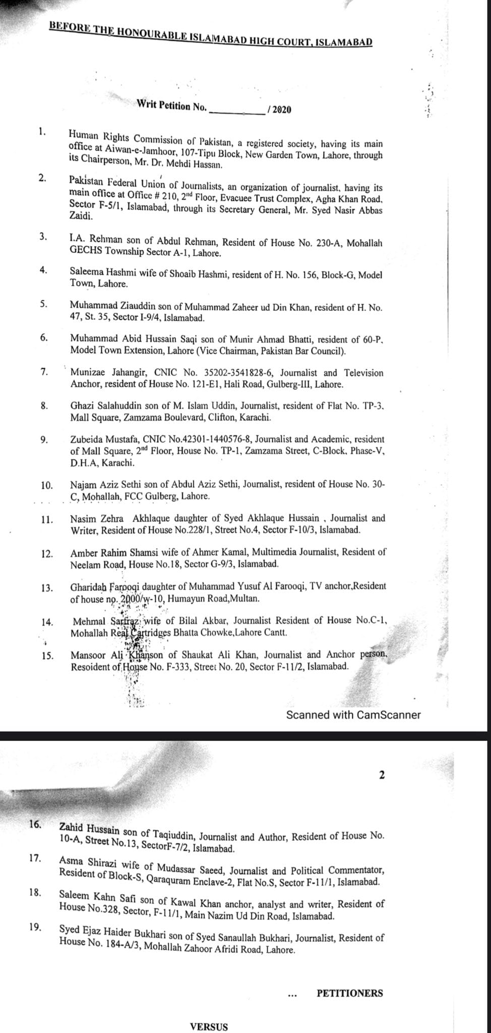 معروف و مشہور “چڑیا والے بابا” نجم سیٹھی کی قیادت میں پاکستان فیڈرل یونین آف جرنالسٹ کے پرچم تلے کچھ صحافیوں نے جن میں سلیمہ ہاشمی، منیزے جہانگیر، غازی صلاح الدین، زبیدہ مصطفیٰ ، نسیم زہرہ، امبررحیم شمسی، غریدہ فاروقی، مہمل سرفراز، منصورعلی خان، عاصمہ شیرازی، سلیم صافی اور سیداعجاز بخاری وغیرہ نے پیمرا کے خلاف اسلام آباد ہائیکورٹ میں پٹیشن جمع کرائی کہ نوازشریف جو اس وقت لندن میں مقیم ہے، اسکو پاکستانی ٹیلیوژن چینلز پر بھرپور تقاریر کرنے اور اپنے خیالات کے اظہار کی اجازت دی جائے۔ Ragoun Mein Andhera Ragoun Mein Andhera Ragoun Mein Andhera